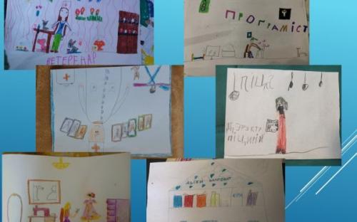 Свої роздуми на цю тему діти відобразили у малюнках і спробували уявити себе в майбутньому лікарем, вчителем, актрисою, моделлю, ветеринаром, програмістом, директором піцерії, інструктором з катання на лижах, футболістом, співачкою, модельєром, перукарем, балериною тощо.