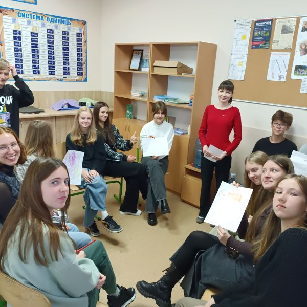 Наприкінці заняття з метою формування навичок взаємодії, терпіння, спокою, спільного виконання завдання було проведено практикум для встановлення довірливих стосунків у групі «Малюнок з каракулів». Учні з задоволенням обговорили результати роботи, почуття від малюнків, і вклад кожного у спільну справу.