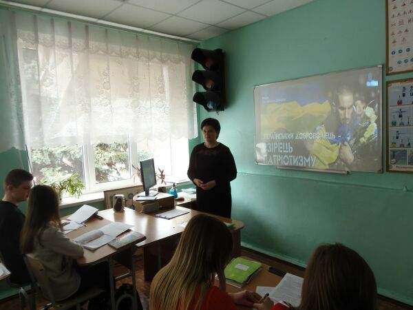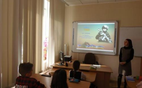 З метою вшанування мужності та героїзму захисників незалежності, суверенітету і територіальної цілісності України, сприяння подальшому зміцненню патріотичного духу в суспільстві, підвищенню суспільної уваги і турботи про учасників добровольчих формувань 14 березня 2018 року в Броварському навчально-виховному об’єднанні вихователі ГПД, класні керівники для школярів 1-3, 5 класів ЗОШ І-ІІ ст. та учнів 11 класу Ліцею технологічного профілю БНВО провели тематичні виховні заходи: інформаційні години, виховні бесіди на тему: «Героїв країна – моя Україна». Педагоги підготували відеосюжети про українських добровольців. Із дитячих творчих робіт були оформлені виставки малюнків, виготовлені плакати.