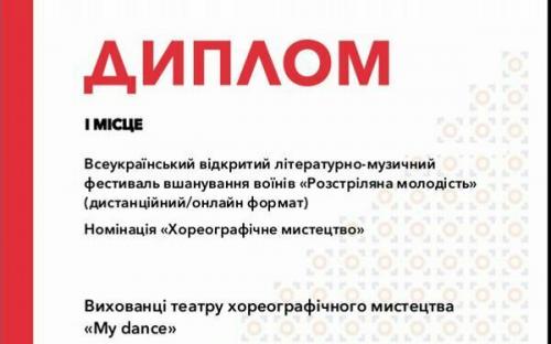 І місце – вихованці Театру хореографічного мистецтва «My dance», керівник Шихабутдінова Світлана Миколаївна;