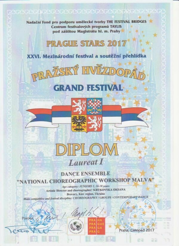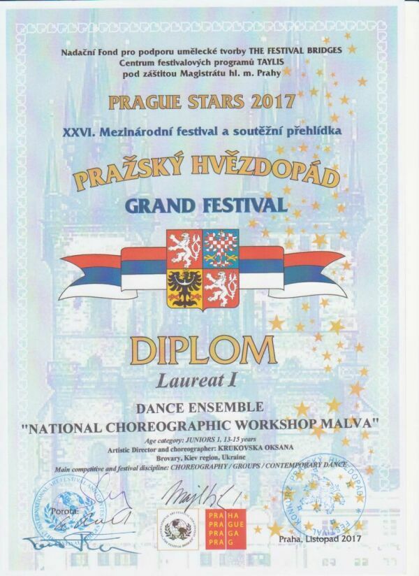 3-4 листопада 2017 року вихованці Народної хореографічної майстерні «Мальва» Центру позашкільної освіти БНВО взяли участь у міжнародному фестивалі "Пражський зорепад", який відбувся у місті Прага (Чехія).