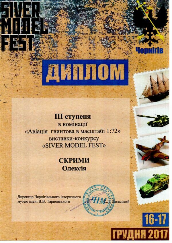 16-17 грудня 2017 року у місті Чернігів у приміщенні Військово-історичного музею відбулася Всеукраїнська виставка стендових моделей «Siver model fest». В Чернігові такий масштабний зліт моделістів проходить вперше. Всього на виставці зареєструвалися 470 моделей.