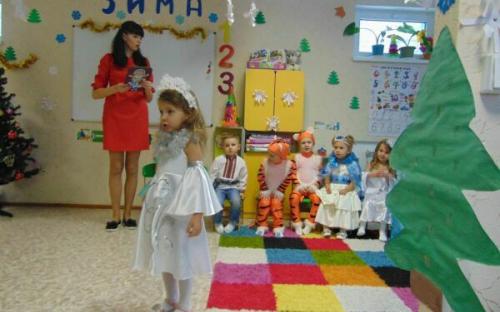 Маленькі вихованці здивували Зиму святковими нарядами казкових героїв та яскравими костюмами звіряток. Вони співали й танцювали, радували своїх батьків новорічними віршиками. Святкова атмосфера заохотила дітей веселитися та гратися.