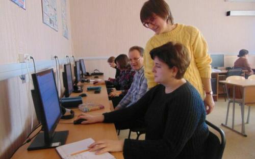 Практична частина проходила у кабінеті інформатики. Наталія Володимирівна презентувала урок для 7 класу на тему «Формули в електронних таблицях». Педагоги були у ролі учнів: сформулювали мету уроку, цілі, відповідно до цілей визначилися з критеріями оцінювання; опрацювавши теоретичний матеріал, розв’язали три задачі і одну склали та розв’язали самостійно (творче завдання), заповнили картку самооцінювання.
