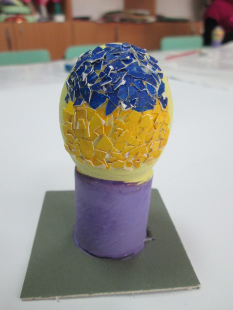 Один із варіантів прикрашання – «мозаїка яєчною шкаралупою» було обрано для учасників майстер-класу. Вихованці з позитивними думками та найкращими побажаннями один одному самостійно створювали композицію для поверхні яйця та виконували аплікацію.