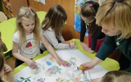 По завершенню заняття першокласники активно працювали над творчим колажем «Квітка емоцій».