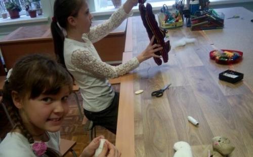 На занятті гуртка вихованці ознайомились з професіями типу «Людина - художній образ», а саме кравця, закрійника, швачки, дизайнера з виготовлення іграшок та прикрас з тканини. Вивчили ручні шви: «уперед голку», «назад голкою», які будуть потрібні для виготовлення м'яких іграшок, штучних квітів з фетру та тканини. Діти з цікавістю працювали та із захопленням декорували свої вироби.