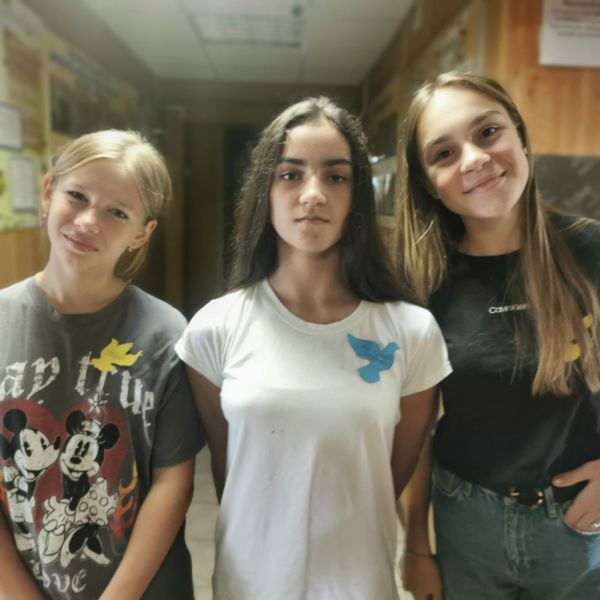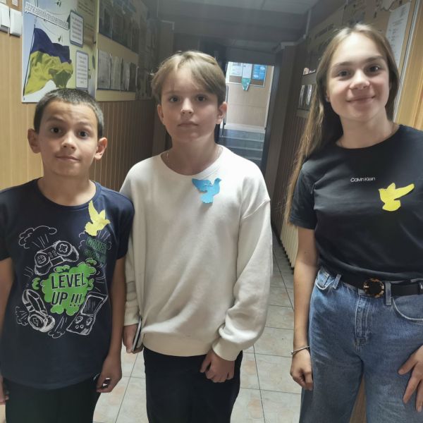 Восьмикласники та дев’ятикласники на перерві проводили вікторину «Знаю про Україну все!» та за правильні відповіді на питання вручали символи голубів з побажаннями миру, добра та перемоги Україні.