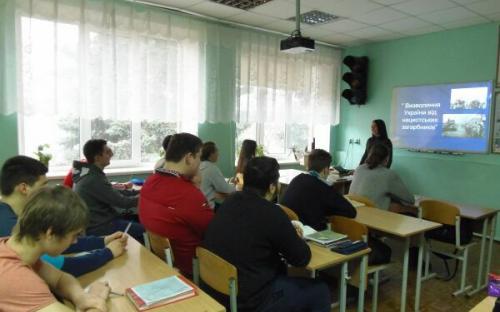 18 жовтня 2017 року вчитель історії Шляхтиченко Ірина Вікторівна провела для учнів 5 та 11 класів виховну годину на тему «Роки війни - століття пам'яті» до Дня визволення України від німецько-фашистських загарбників. Учні ознайомилися з подіями Другої світової війни в Україні та на території нашого краю. Учитель розповіла про героїзм визволителів, але переконатись в цьому учні змогли і самостійно переглянувши відеоролик «Визволення України».