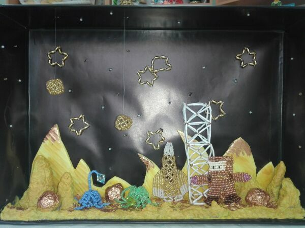 - «Космічне життя» (бісероплетіння) – виконала Луценко Анжеліна, вихованка гуртка «Смарагдова скарбничка» (керівник Шевченко Ірина Миколаївна);