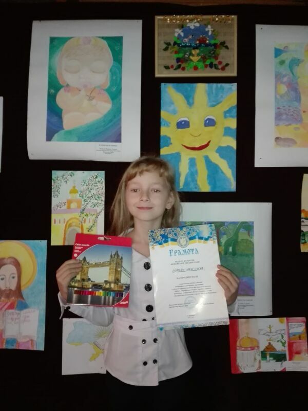 - Драницина Анастасія (8 р.), вихованка гуртка «Палітра», керівник Борисенко Любов Миколаївна, за роботи «Малиновий дзвін», «Воскресіння», «Бог врятовує пророка Іону з черева кита» отримала грамоту за участь.