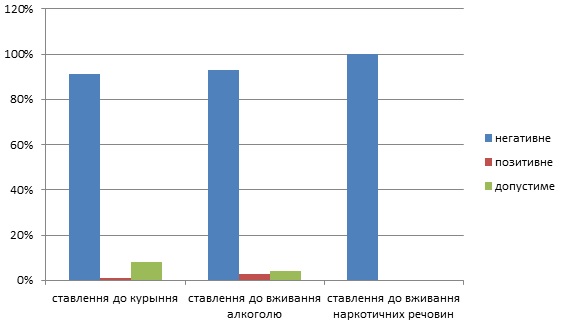 Висновок: За результатами анкетування ми отримали позитивну динаміку ставлення учнів до вживання алкоголю, куріння, наркотичних речовин.